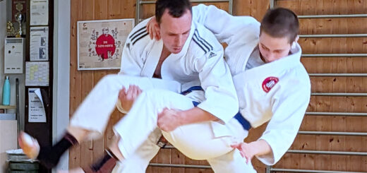 Zum Abschluss einer langen Prüfung stellten sich die Prüflinge noch den freien Angriffen von 1-2 Angreifern mit und ohne Waffen und dem Ju-Jutsu-Kampf in den freien Anwendungsformen.