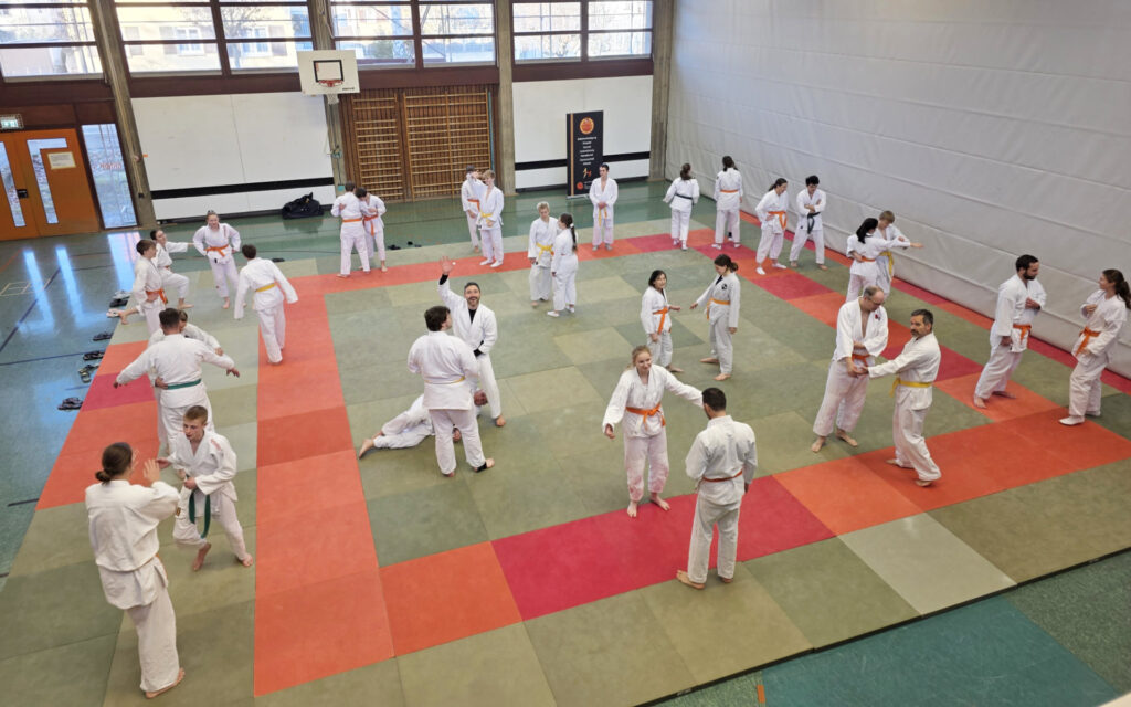 Matthias Scheffelmeier widmete sich den Wurftechniken und führte seine Gruppe strukturiert durch unterschiedliche Varianten. Im Mittelpunkt standen präzise Eingänge, stabile Positionen und kontrollierte Abläufe. Die Teilnehmenden konnten spürbar an ihren Details arbeiten und bekamen klare Korrekturen, die unmittelbar Wirkung zeigten. Das Training blieb durchgängig praxisnah und technisch sauber.