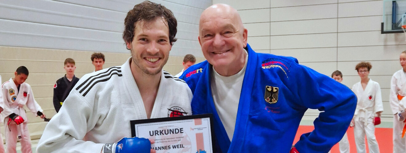 Ein besonderer Höhepunkt des Tages war die Verleihung des JuJu in Bronze an Hannes Weil. Der JuJu-Drache ist das Maskottchen der Jugend im Deutschen Ju-Jutsu-Verband und wird für besonderes Engagement in der Kinder- und Jugendarbeit verliehen. Hannes Weil erhielt diese Auszeichnung als erster Sportler in Württemberg. Seit zehn Jahren engagiert er sich beim Budo-Club Hikari Lauffen als Trainer und Vorsitzender mit außergewöhnlichem Einsatz für die Nachwuchsarbeit und prägt damit die Entwicklung zahlreicher Kinder und Jugendlicher nachhaltig.