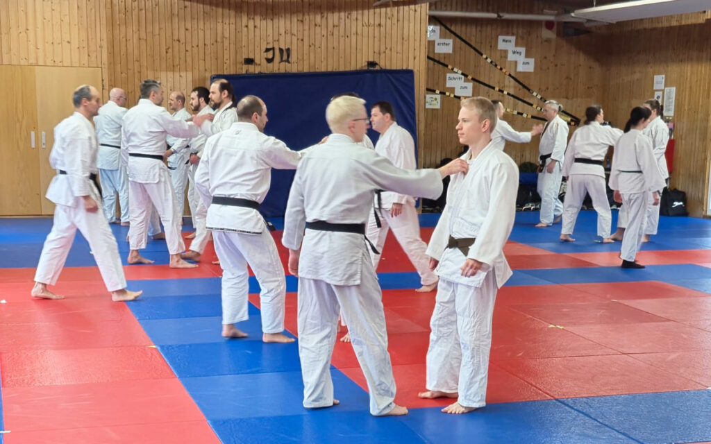 Insgesamt standen acht Stunden Training auf dem Programm. Die Gruppe wiederholte Bewegungsabläufe, übte Kombinationen und arbeitete an vielen Details. Dabei ging es nicht nur um die Reihenfolge der Techniken, sondern auch um Timing, Distanz und das Zusammenspiel zwischen Tori und Uke.