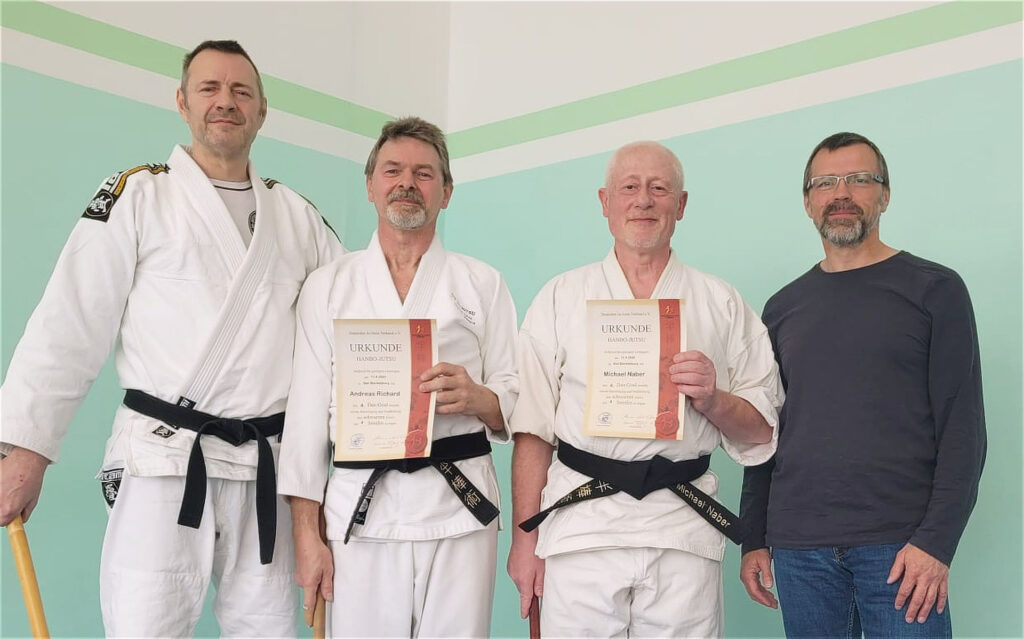 Besonders erfreulich: Die Prüfung verlief harmonisch, fair und verletzungsfrei. Am Ende stand für Andreas Richard die bestandene Prüfung zum 4. Dan und damit ein weiterer bedeutender Meilenstein auf seinem Weg im Hanbo-Jutsu.